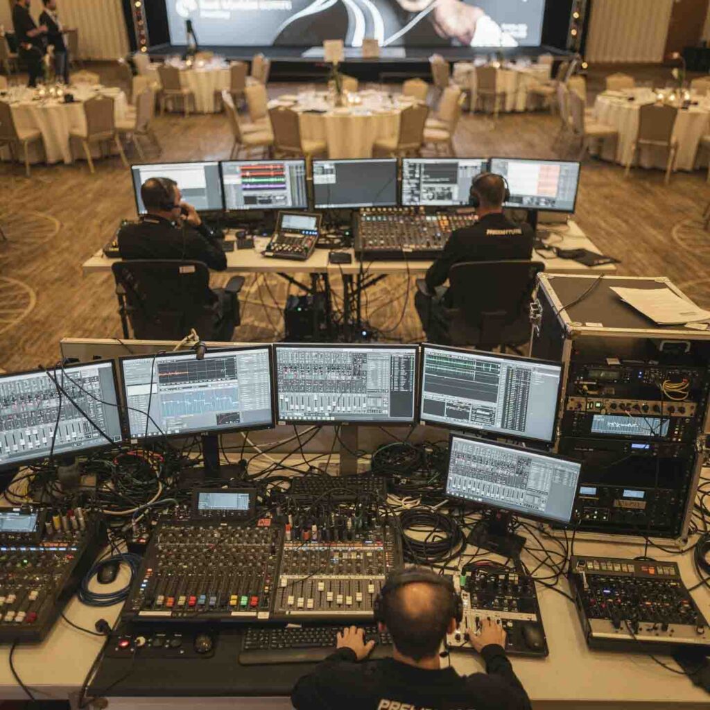 • Our skilled AV technicians are present during your event to manage all technical aspects, troubleshoot issues, and ensure everything runs smoothly.